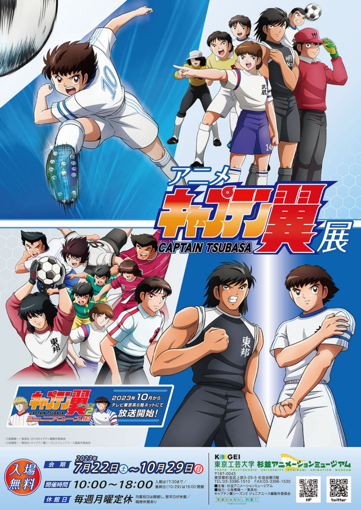 日本中にサッカーブームを巻き起こした、高橋陽一原作の伝説的なサッカーマンガ「キャプテン翼」。2023年10月から「ジュニアユース編」のテレビ東京系6局ネットでの放送が決まっているが、新シリーズの放送前に「キャプテン翼」の基本情報をおさらいできる企画展が、東京工芸大学 杉並アニメーションミュージアムで開催される。