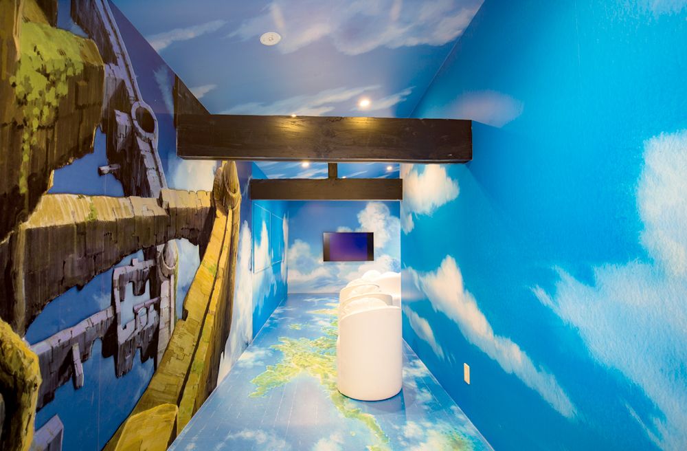 なかでも、部屋一面が空と雲に囲まれたコーナー「空と雲の部屋」に注目。山本氏が描く迫力ある雲は、ファンの間で「二三雲」と呼ばれており、この部屋ではその世界にすっぽりと入ってしまうことができるのだ。さらに、写真撮影が可能なのも、うれしいポイント。