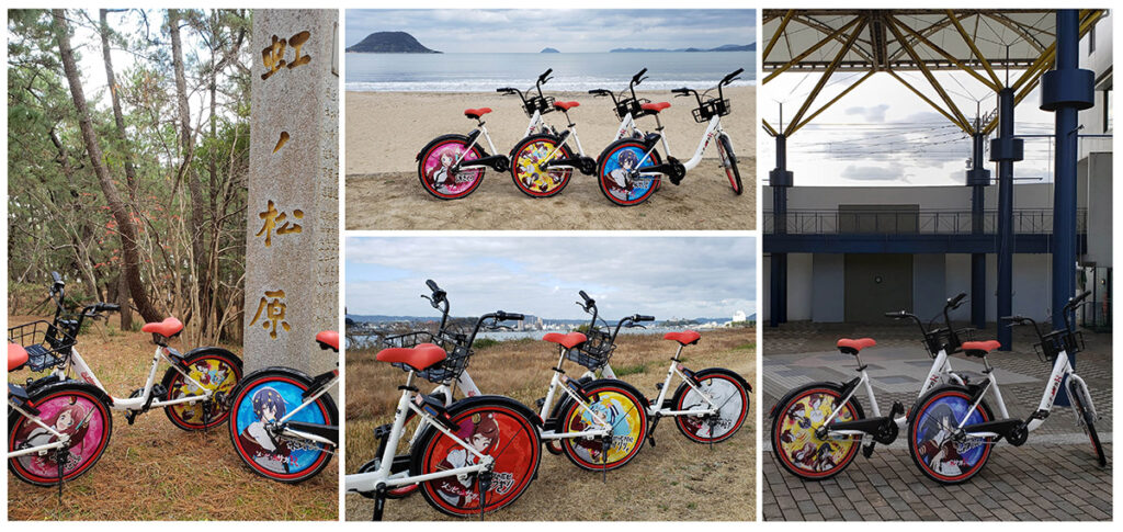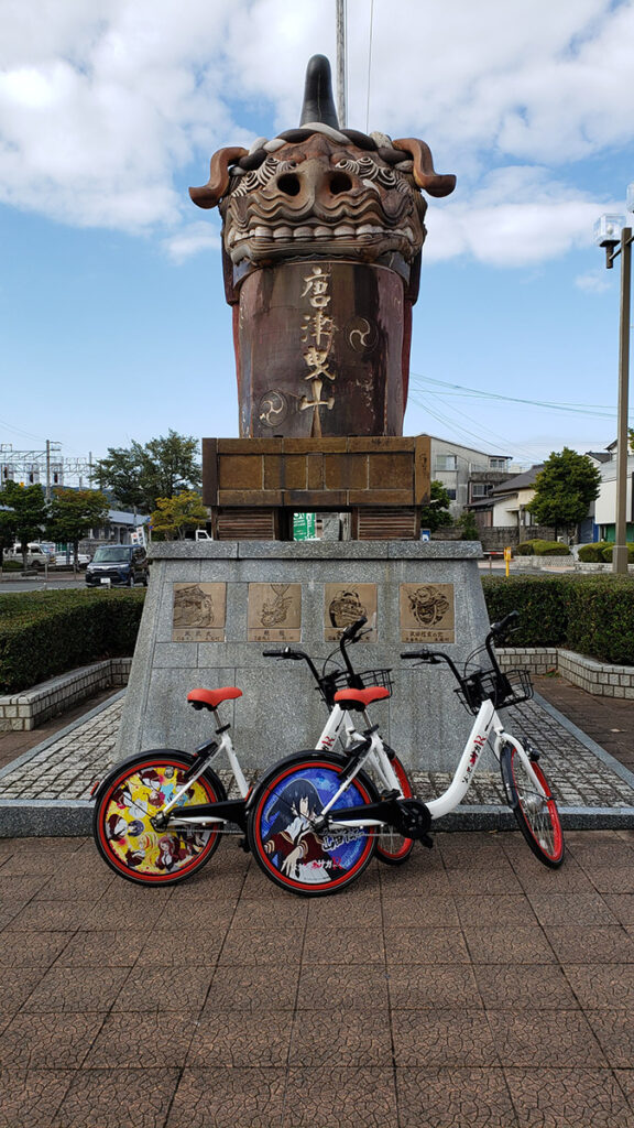 唐津市は、TVアニメ『ゾンビランドサガ』のフランシュシュが居住している「唐津市歴史民俗資料館」や、ライブを開催した「唐津市ふるさと会館アルピノ」などが舞台として知られております。これまでも多くのファンの方が同地を訪れています。当協会はこれまでも聖地巡礼の際にアニメサイクルを使用することで、より楽しんでいただけるよう各アニメ聖地でのアニメサイクルの開発を推進していましたが、この度関係者のお力添えをいただき、唐津市内3ヶ所でアニメサイクルを始動させることができました。