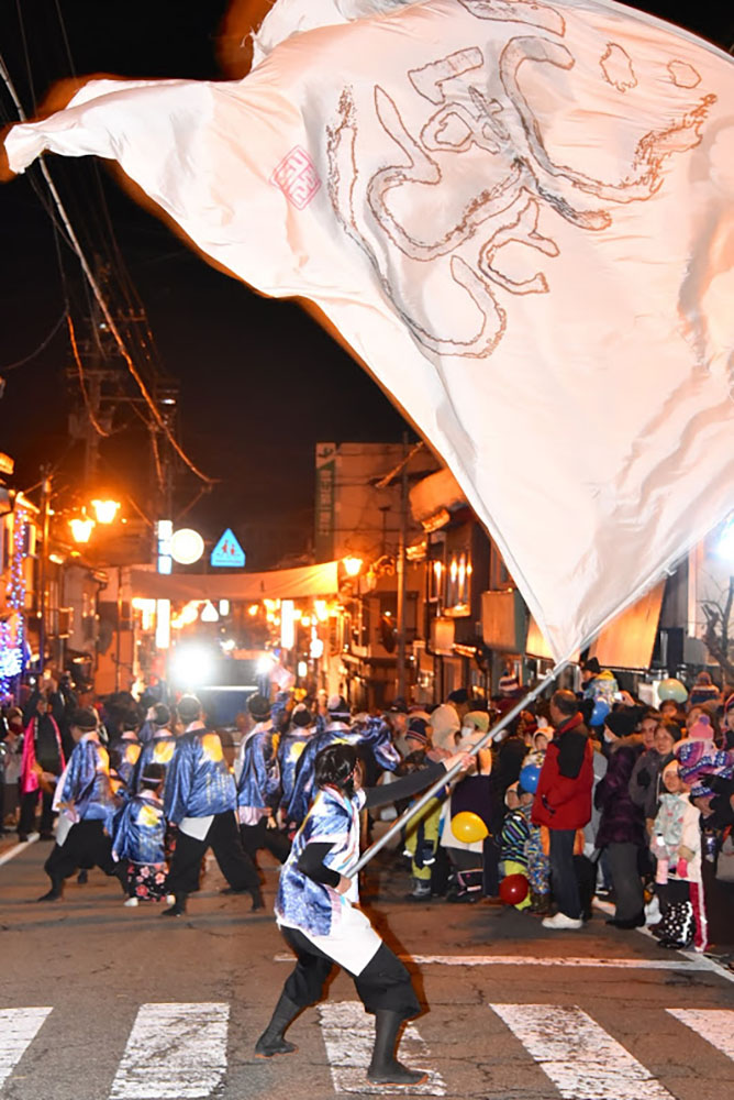 「君の名は。」の聖地として選定されている岐阜県飛騨市で「第62回 飛騨神岡初金毘羅宵祭」が開催。補陀山洞雲寺(ほださんとううんじ)へ奉納行列を行い、商売繁盛と家内安全を祈願する冬祭りだ。