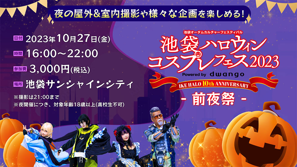 また10月27日(金)は、夜のコスプレ&撮影会が楽しめる前夜祭がサンシャインシティで開催。夜景を生かしたシーンや幻想的な雰囲気でのコスプレ・撮影会を楽しめるほか、夜のイベントならではの様々な企画が用意されてされているので、本イベントと併せてチェックしたい。