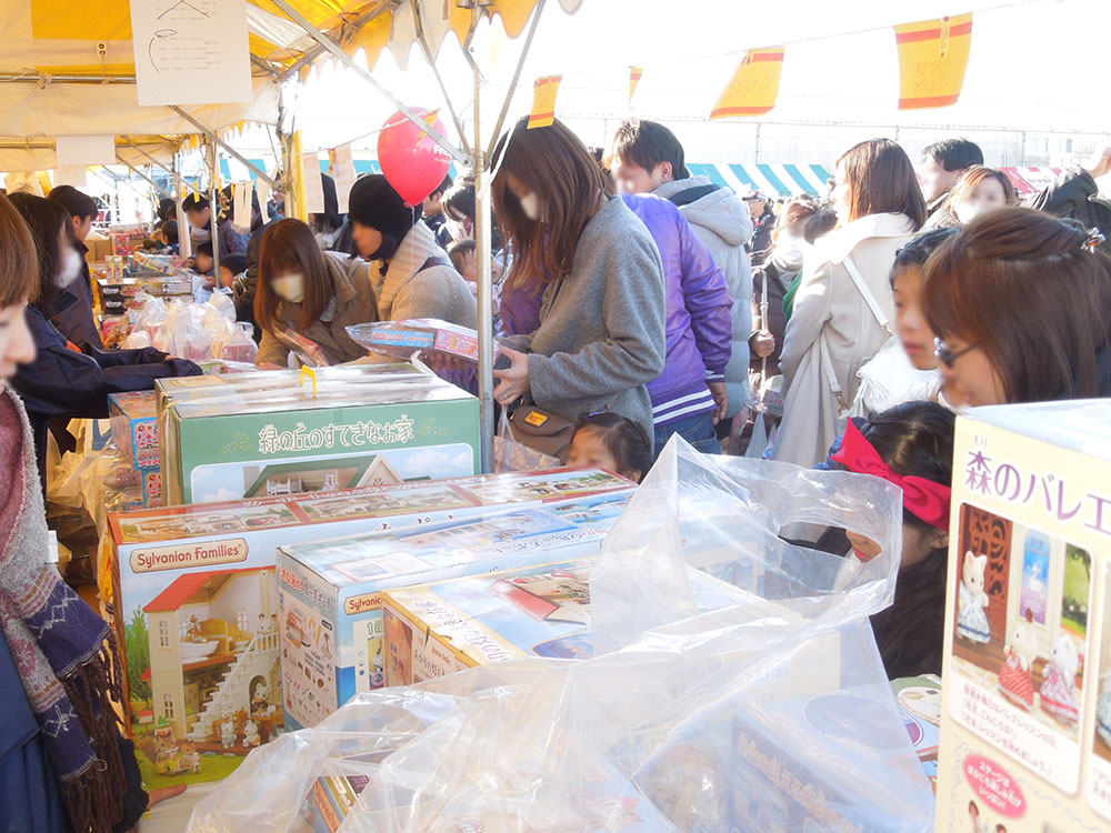 目玉イベントのおもちゃのバザールには、おもちゃ団地協同組合に加盟している、エポック社グループ、タカラトミーグループ、バンダイグループの商品がラインアップ。ぬいぐるみや知育玩具、プラモデル、文具、雑貨などクリスマスプレゼントにぴったりな商品が、お得な価格で手に入るということで、毎年県内外から多くの家族連れが訪れる。