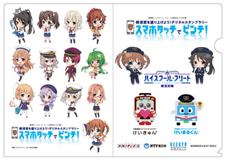 「ハイスクール・フリート」ゆかりの地をはじめとした横須賀地域のランドマーク施設や商店街のチェックポイント前13か所に設置されたプレートに、スマートフォンでタッチもしくはQRコードを読み取ることで、デジタルスタンプをゲット。一定のスタンプを集めるとイベントオリジナルの壁紙がダウンロードできる。さらに、一定のスタンプを集めた人の中から先着1000人に限定クリアファイルをプレゼント。
