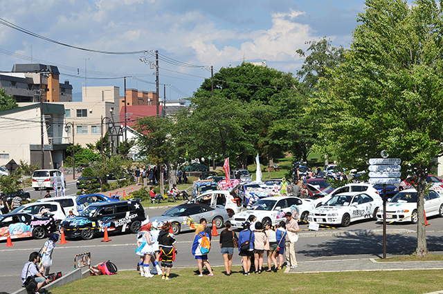 キャラクターがデザインされた痛車の展示(写真提供:TOYAKOマンガ・アニメフェスタ事業推進委員会)