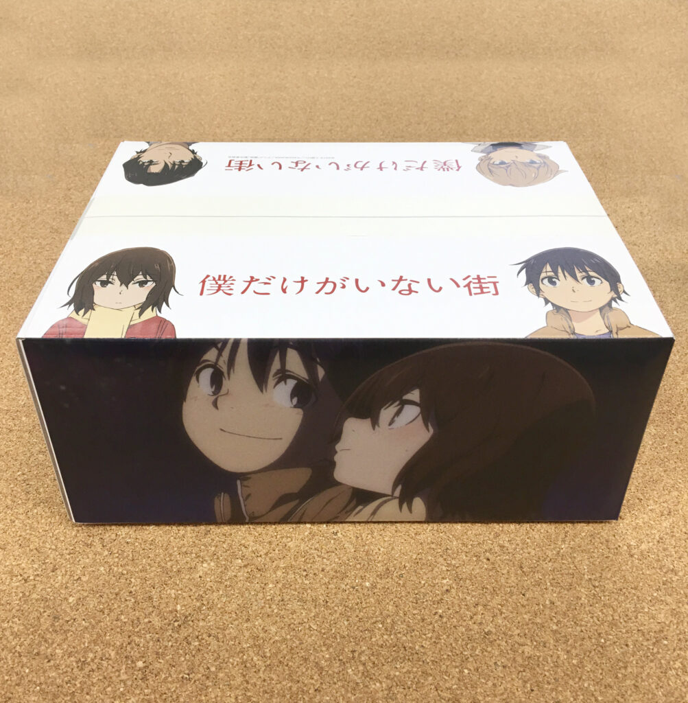 「苫小牧観光案内所」限定販売のイラスト入りダンボール。特産品のほかに、「僕だけがいない街」のクリアファイルも入っている