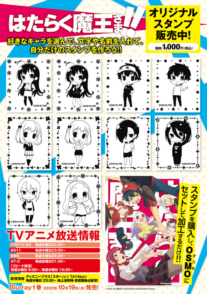 自分の好みの絵柄でスタンプを作成できる「OSMO」では、「京まふ」で初お目見えとなる「はたらく魔王さま!!」などのキャラクターの絵柄が用意されています。