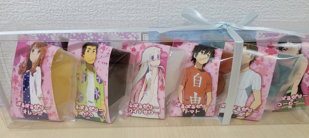 作品とコラボした「あの花プルプルゼリー」(1600円)に加え、作品の舞台モデル地である埼玉県秩父市のB級グルメとして有名な”みそポテト”を再現した「みそポテトチップ」(380円)などを販売します。