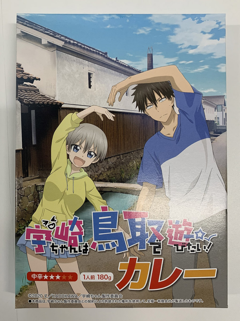 鳥取県産牛の牛骨スープで煮込んだ「宇崎ちゃんは鳥取で遊びたい!カレー」(700円)や、作品に登場した倉吉市の名所を背景にした「複製原画入りクリアファイル」を販売します(全3種・各550円)。