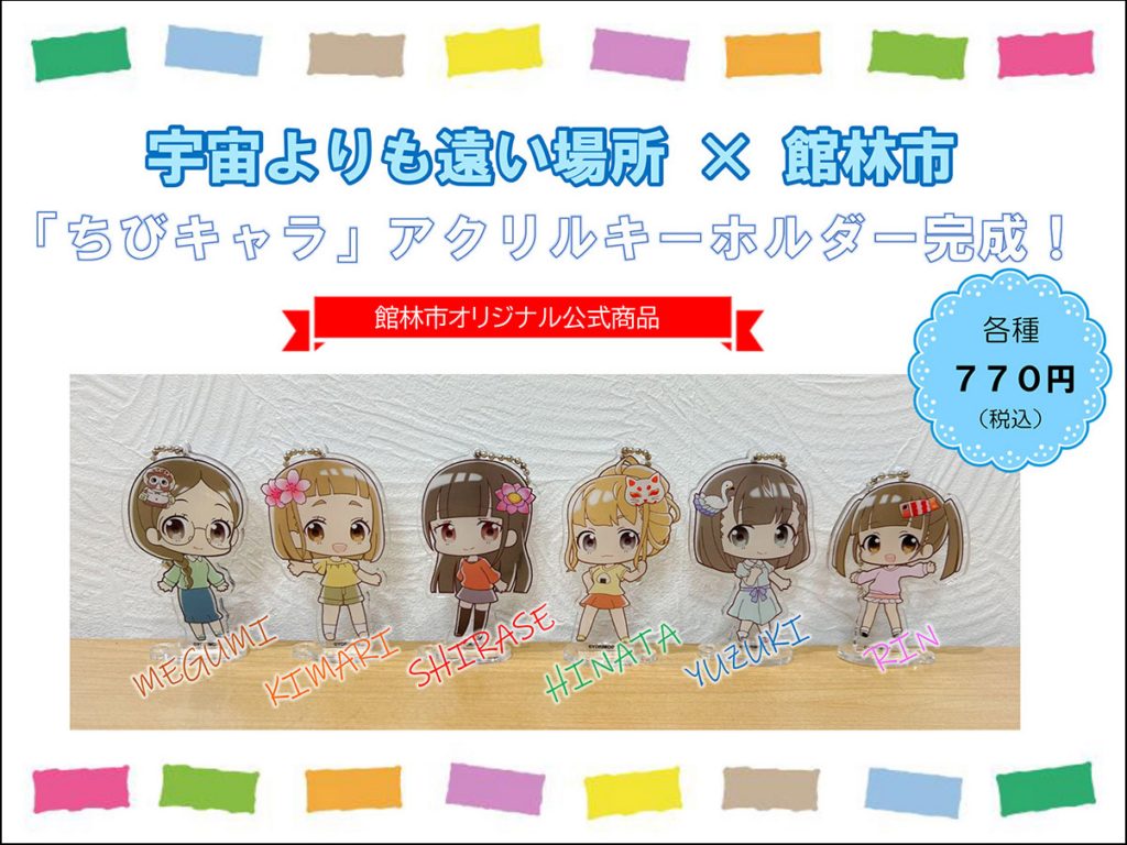 通常は作品の舞台モデル地になった群馬県館林市限定で販売されている「ちびキャラ」アクリルキーホルダー(全6種、770円)や、A5サイズのミニクリアファイル(全5種、380円)をブースで特別販売します。また、”うどん日本一決定選手権U-1グランプリ”で3年連続日本一に輝いた「鬼ひも川」(980円)など、館林市の名産品も取り揃えています。